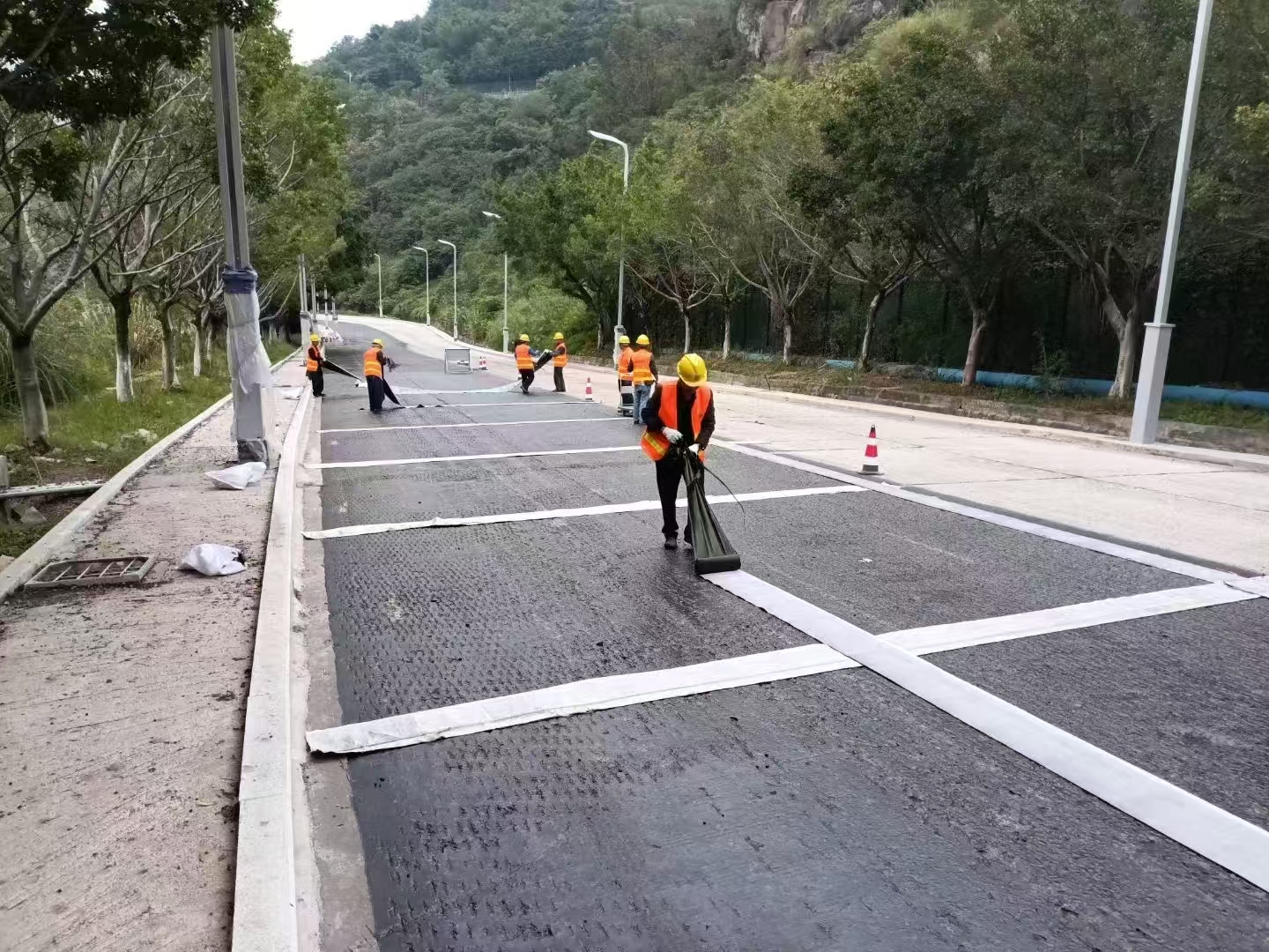 旧路改造——加铺沥青前粘贴,阻断旧裂缝向上反射。