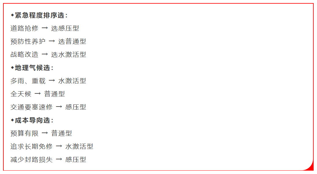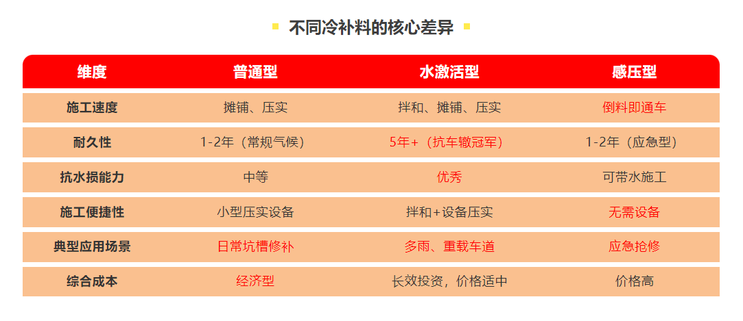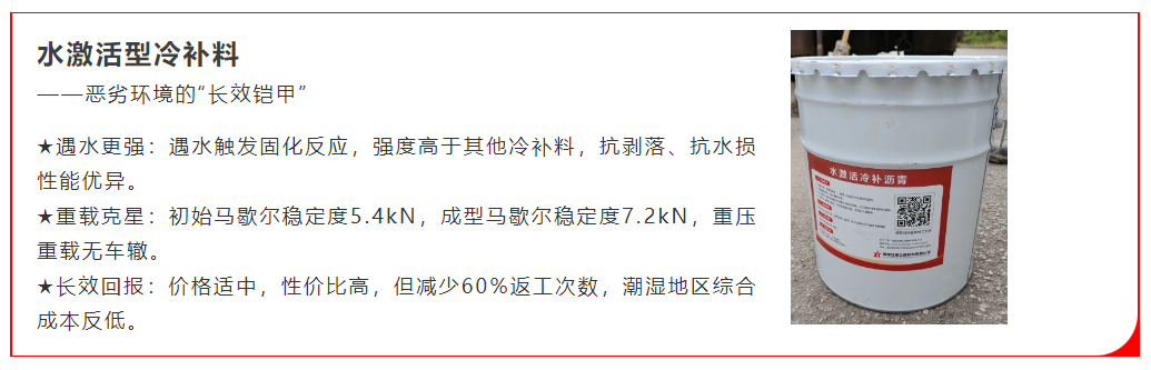 三款冷补料怎么选?1张表说清普通型/水激活型/感压型最佳使用场景